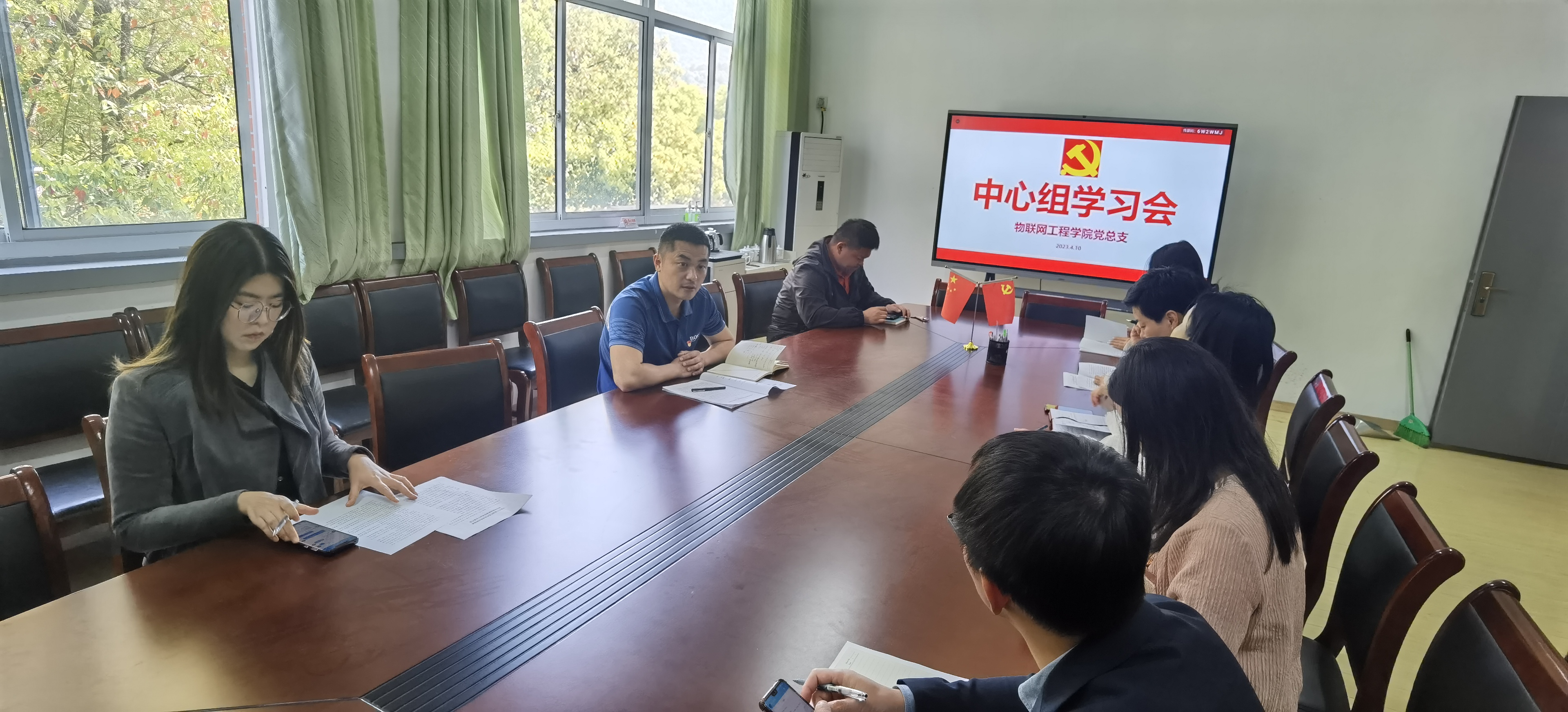 4月10日上午10:00,物联网工程学院党总支中心组全体成员在13号楼312会议室召开学习会,集体学习习近平总书记在全国“两会”期间重要讲话精神和全国“两会”精神、习近平总书记在学习贯彻党的二十大精神研讨班开班式上的重要讲话精神、习近平总书记对深入开展学雷锋活动的重要指示精神。
