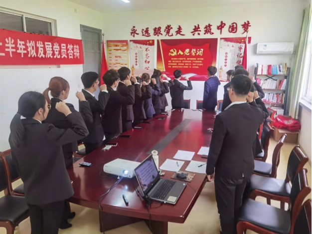 会议第二项内容:拟发展党员们分别通过PPT展示,讲解了自己对党的认识,并对自己的思想动态、学习及工作情况、志愿服务经历和生活等方面紧密结合自身实际进行汇报与总结,对自己在争取入党的过程中的各方面思想及行为表现进行了阐述,反思了自身存在的不足,以及对今后发展方向的展望,并向党组织表达坚定的入党信念。