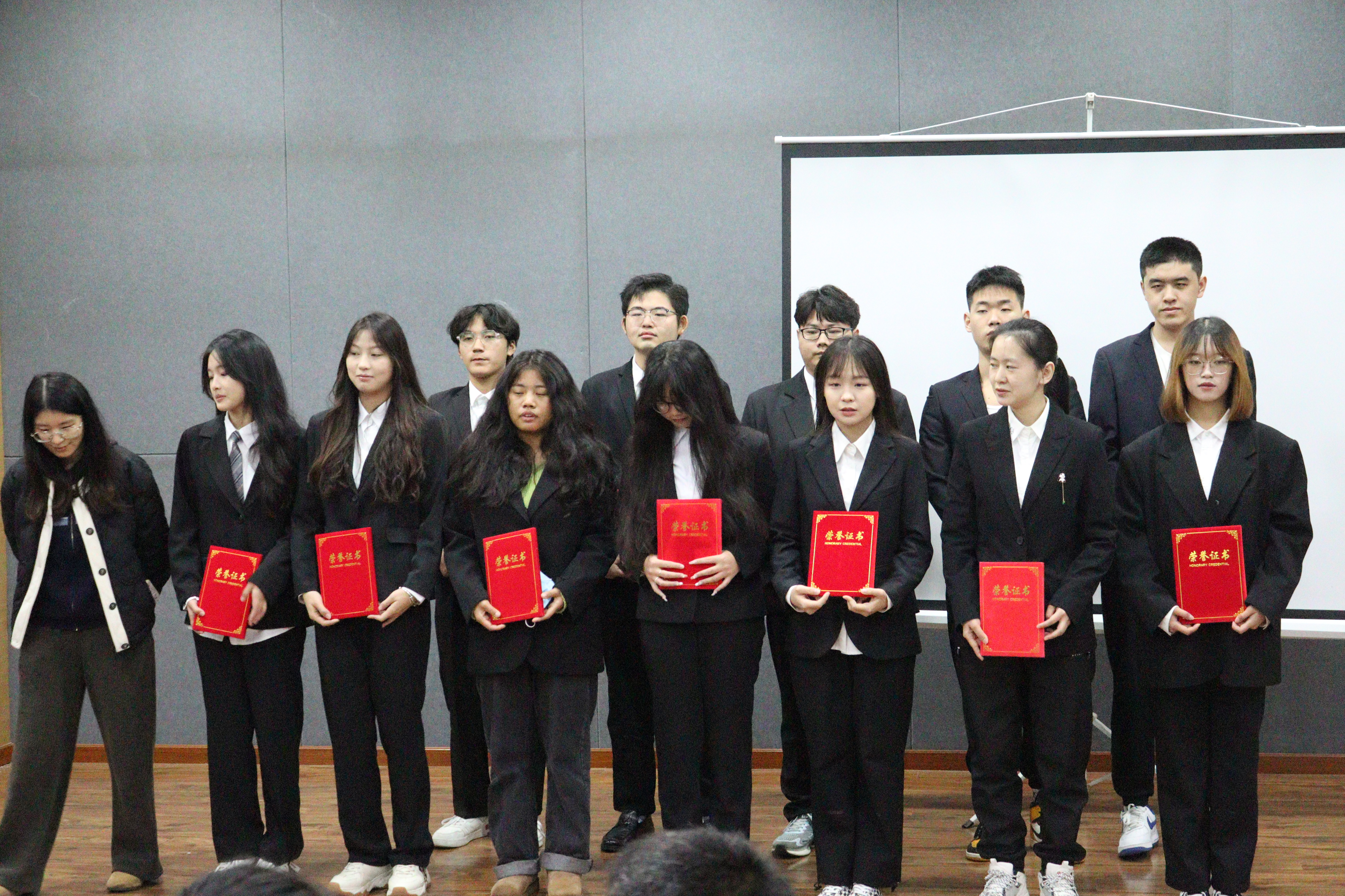 优秀部员:学习部:吴雨馨、吴宇轩、郑雨欣;办公室:梁欣怡、林初镱;组织部:陈启凤、郭钰杰、熊正阳;文体部:王杏、庞永远;外联部:潘旭、殷旭、冯辉;网宣部:叶楠、李佳颖、李娟;权益部:严敏行、张兴旺;班助部门:宋梦钰 石涌琪 王家钰;教学部门:倪子涛,姜琪,李唐洁;学工部门:许阳,朱凯歌,周义洪;新媒体部门:侯佳彤,孙喆楠,刘依灵,由物联网工程学院团总书记尤静峰、学工秘书蒋昕桐颁发荣誉证书。