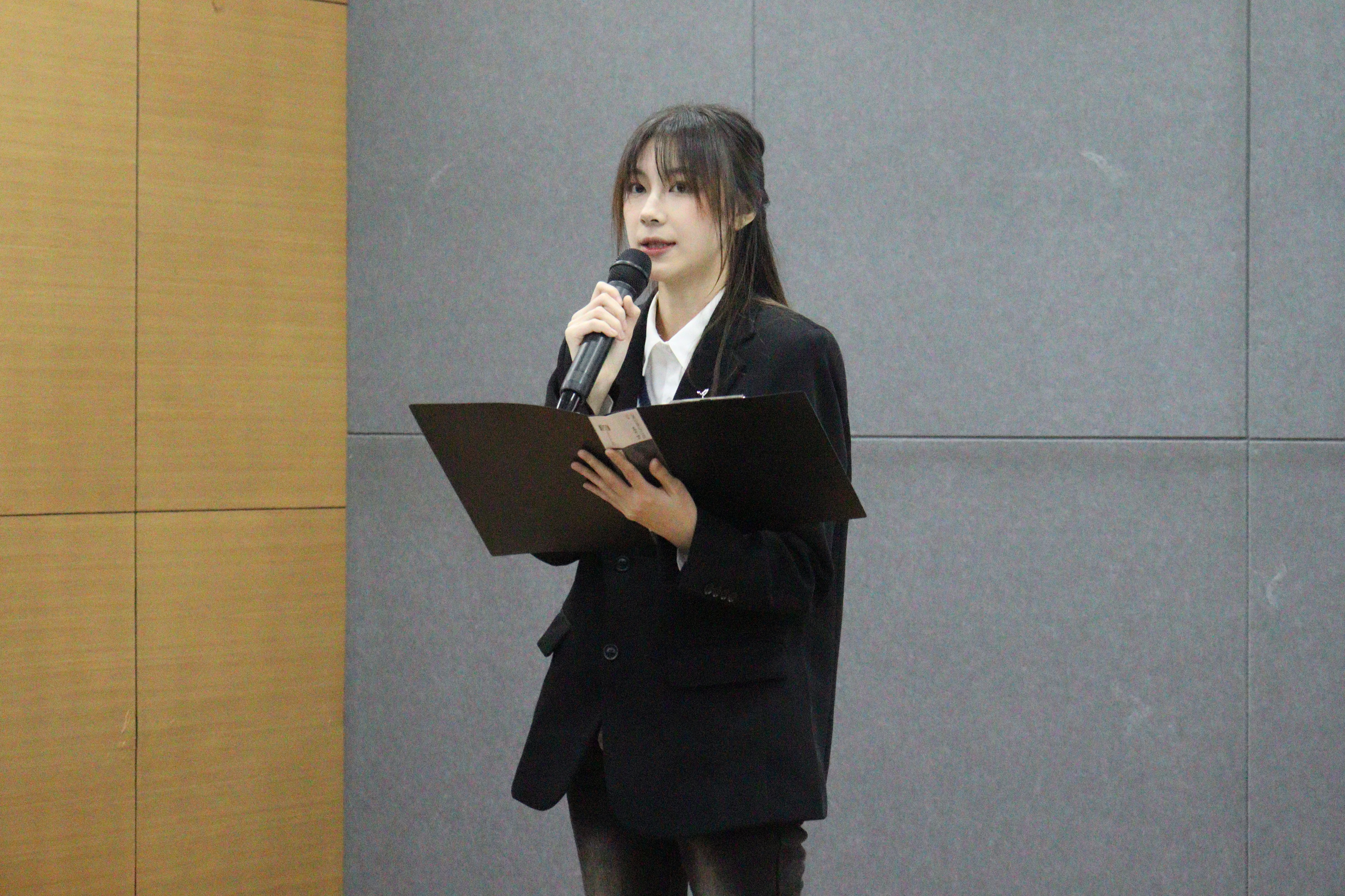 最后,学工助理团学生干部代表陆秋艺对2023-2024学年学工助理团工作部署及展望展开了叙述。她着重提到了学工助理团的成员们要秉持为他人奉献的精神为学院的老师和同学们服务,不仅要在工作时善于思考和计划,在为人处世上更要严格要求自己,为广大同学们树立一个良好的形象、为物联网工程学院的发展贡献自己的一份力量。