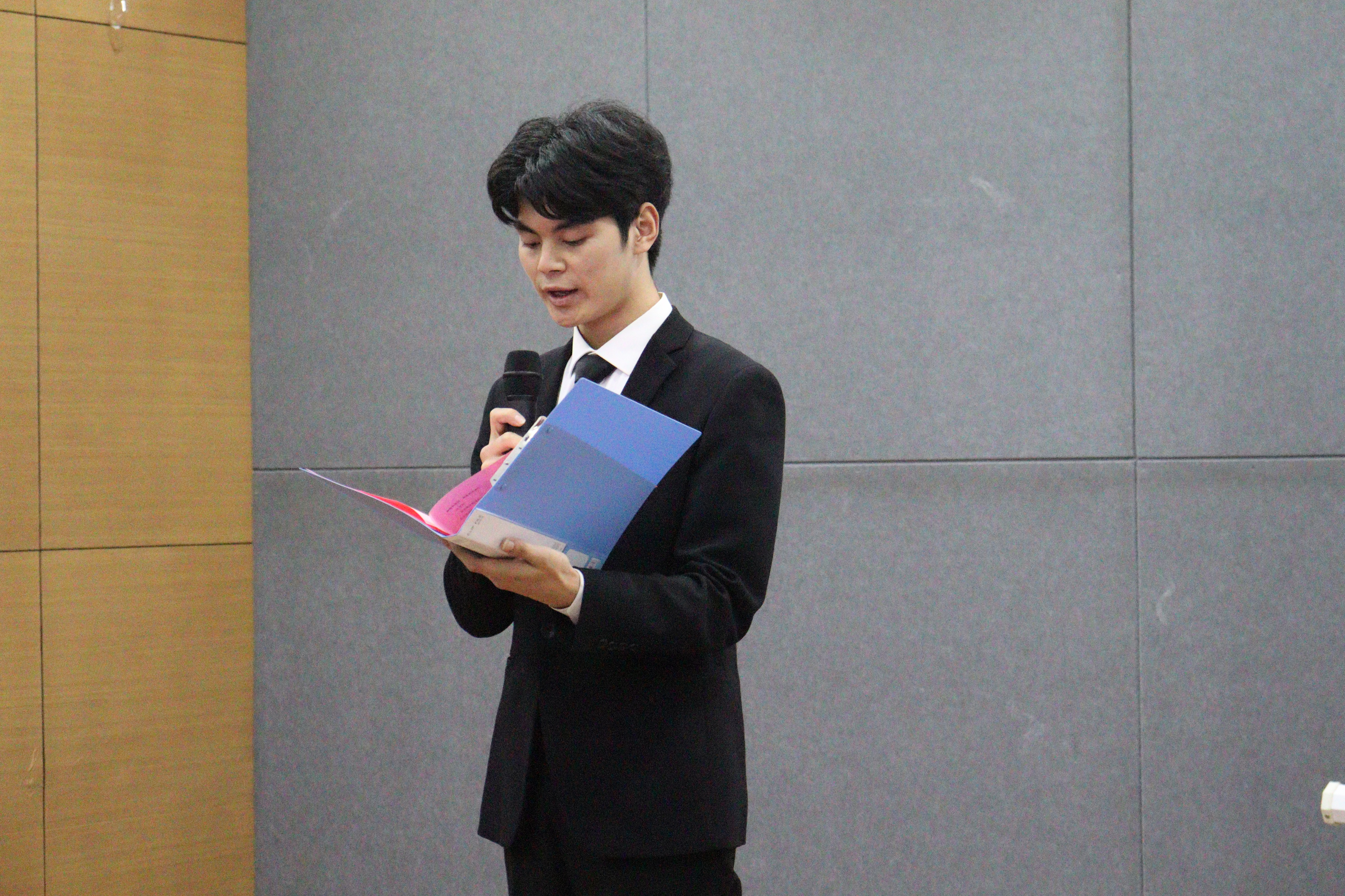 然后,学生分会学生干部代表张萌对2023-2024学年学生分会工作部署和展望进行阐述。他着重强调要加强学生分会的内部建设,提高工作效率,加强各部门之间的沟通合作,规范学生分会干部的选拔、培养以及考核机制,为全面提高成员的综合素质水平打下坚实基础。
