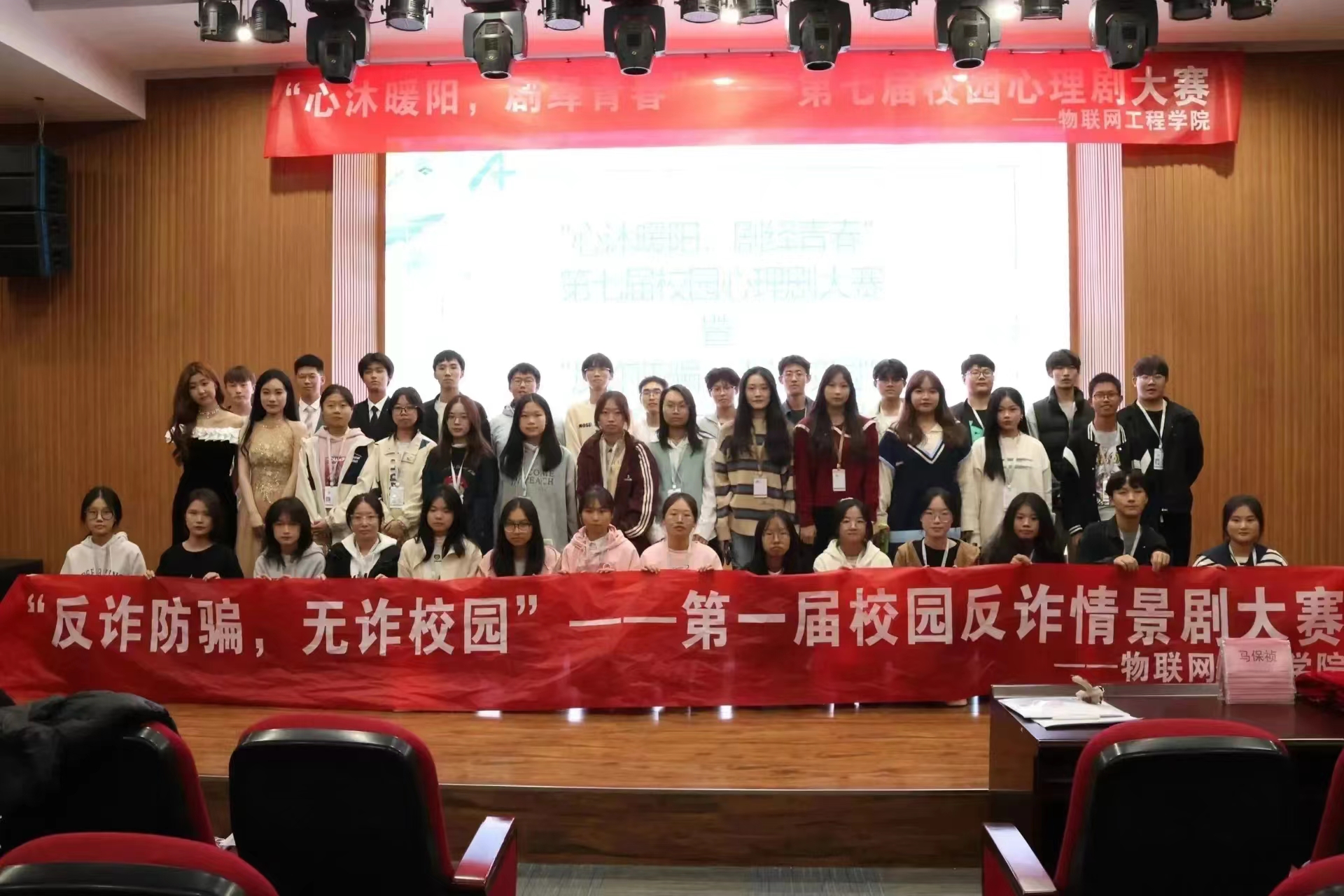 为进一步推动学校的心理健康教育工作以及提升学生的安全防范意识,营造阳光健康的校园文化氛围。我校物联网工程学院于2023年11月7日13:00在大学生活动中心A一楼报告厅举办了物联网工程学院第七届校园心理剧暨第一届校园反诈情景剧大赛。