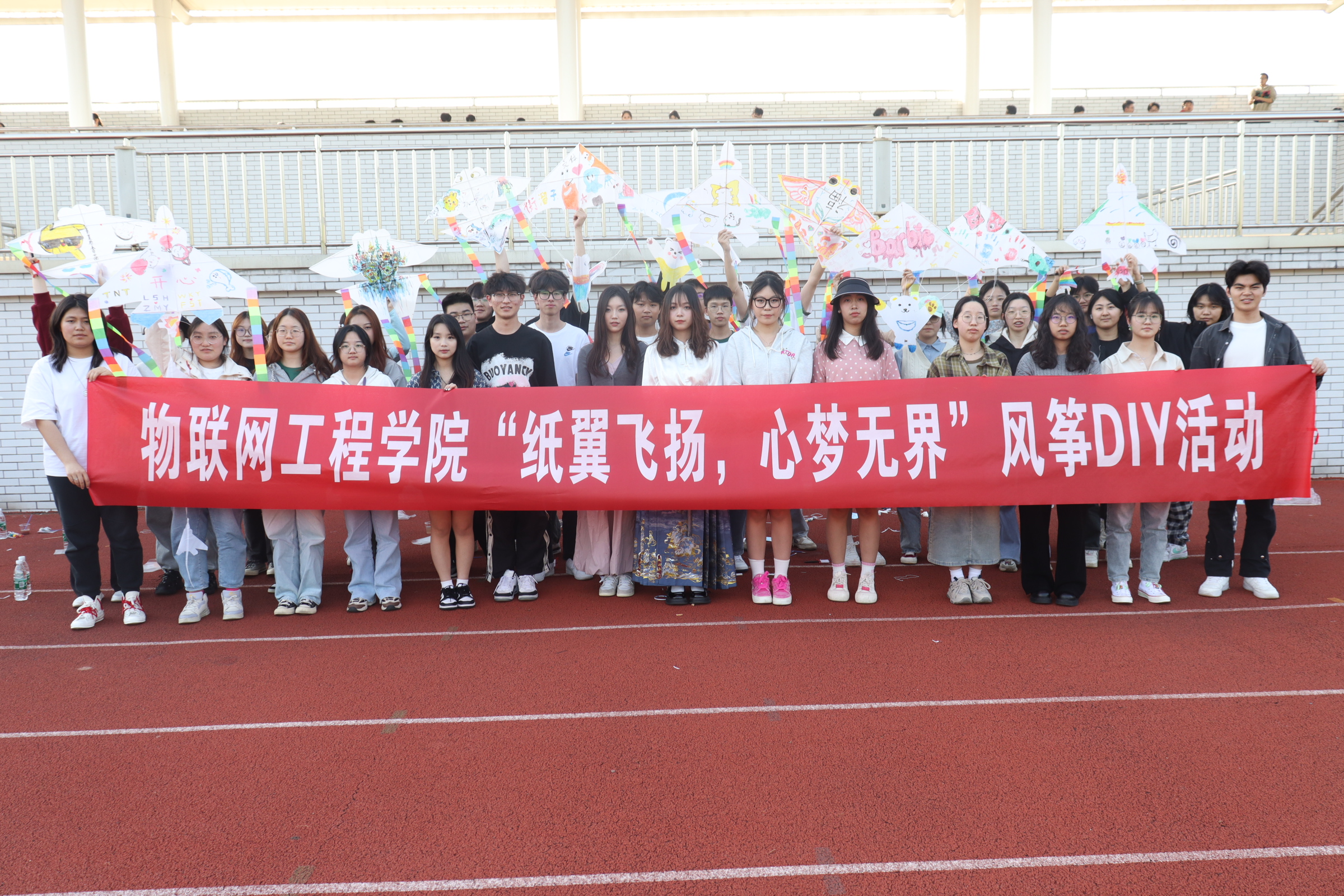 原野远足踏青放风筝,春风吹,纸鸢飞。物联网工程学院于4月18日下午14:00在北区田径场举办了“纸翼飞扬,心梦无界”风筝DIY大赛,此次活动旨在锻炼学院同学们的动手实践能力,增强团队合作精神,丰富同学们的课余生活,营造活跃的校园文化氛围。