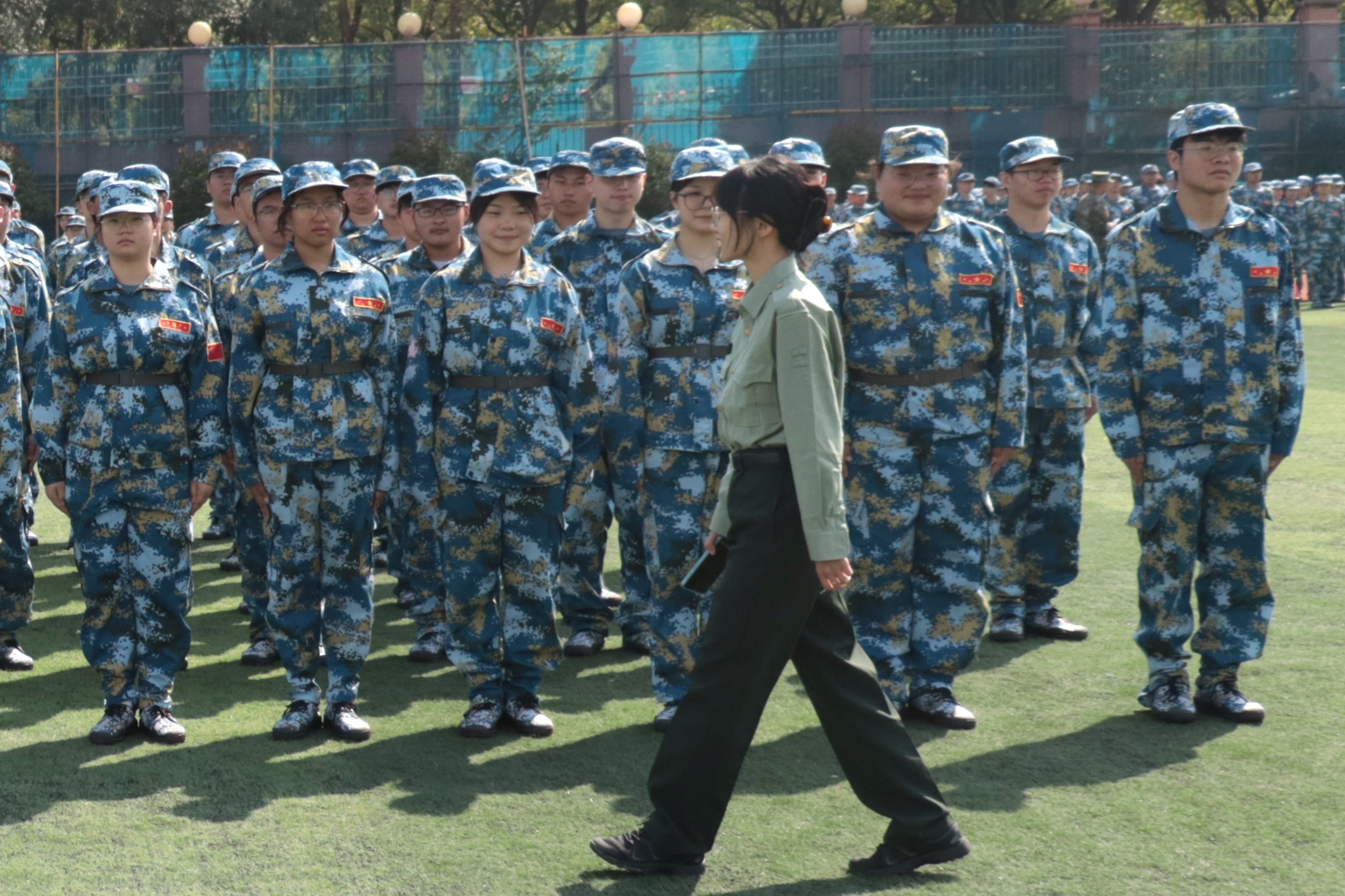 辅导员们穿梭在队列之间,时而停下脚步,仔细观察每位同学的动作是否标准,偶尔轻声细语地给予指导;时而站在一旁,用赞许的眼神扫视整个队伍,那份无声的鼓励仿佛能穿透一切疲惫,让同学们的心中涌起一股力量,更加坚定地投入到接下来的训练之中。