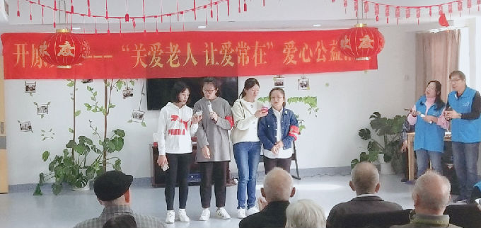 在义工们为老人修理头发、修剪指甲、泡脚之时,物联网工程学院的志愿者与老人们一起聊天,志愿者们的年轻活力感染了每位老人,老人们饶有兴致的给志愿者们讲他们曾经的往事。与此同时,部分志愿者在义工带领下在厨房帮忙择菜,为老人们包馄饨。最后,志愿者们还为老人们表演了精心准备的节目,获得老爷爷老奶奶阵阵掌声。