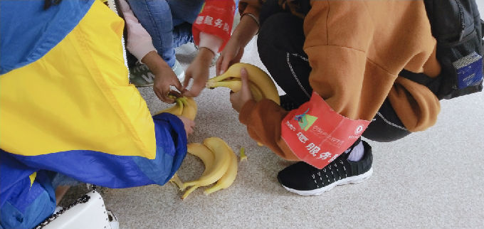 志愿者们把带去的新鲜水果进行了分发:他们将香蕉一个个分好,又仔细地将柚子肉剥出,然后将水果一一送到老人的手中,望着老人们脸上开心的笑容,在场的每位志愿者们都非常开心。