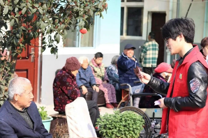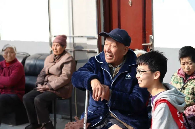 上午8:30,志愿者们到达敬老院,看到老人们已安逸地坐在院子里晒着太阳。