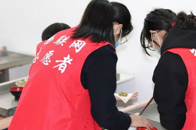 节目表演以后,志愿者们为老人们包饺子,准备他们的午餐。雪白的面皮包着满满的馅料,每一个原料经过志愿者们的手便开出了纯白色的花。