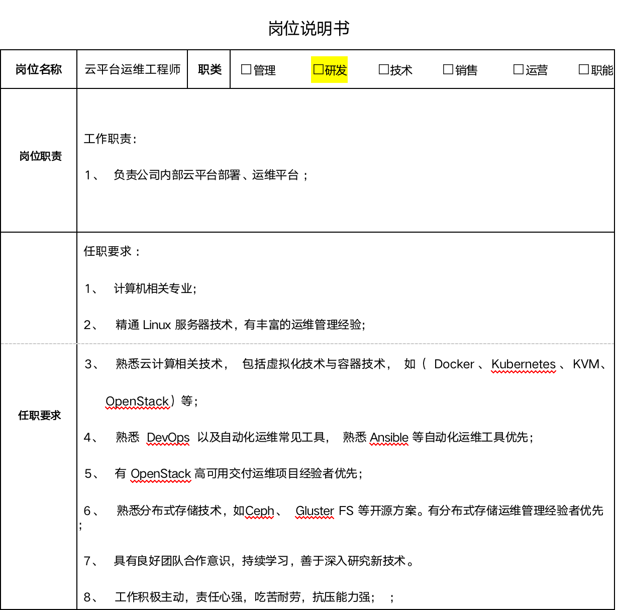 云平台运维工程师