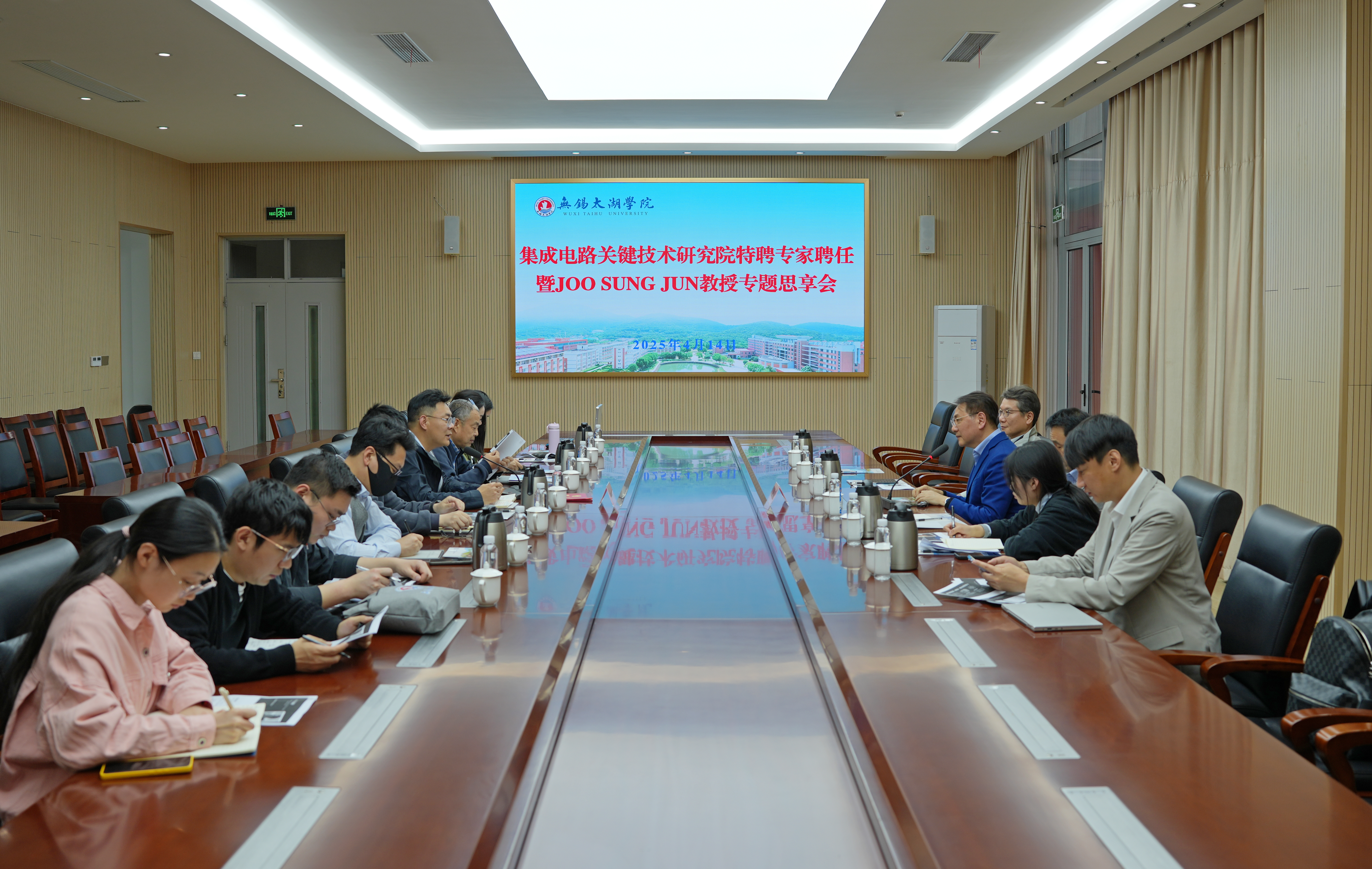 4月14日下午,中韩合作集成电路关键技术研究院特聘专家聘任仪式暨Joo Sung Jun(朱成俊)教授专题思享会在学校工科楼会议室举行。副校长陈鹏飞,特聘专家朱成俊教授出席。研究院院长金奉焕,学校集成电路学院有关负责人,以及研究院教师参加。