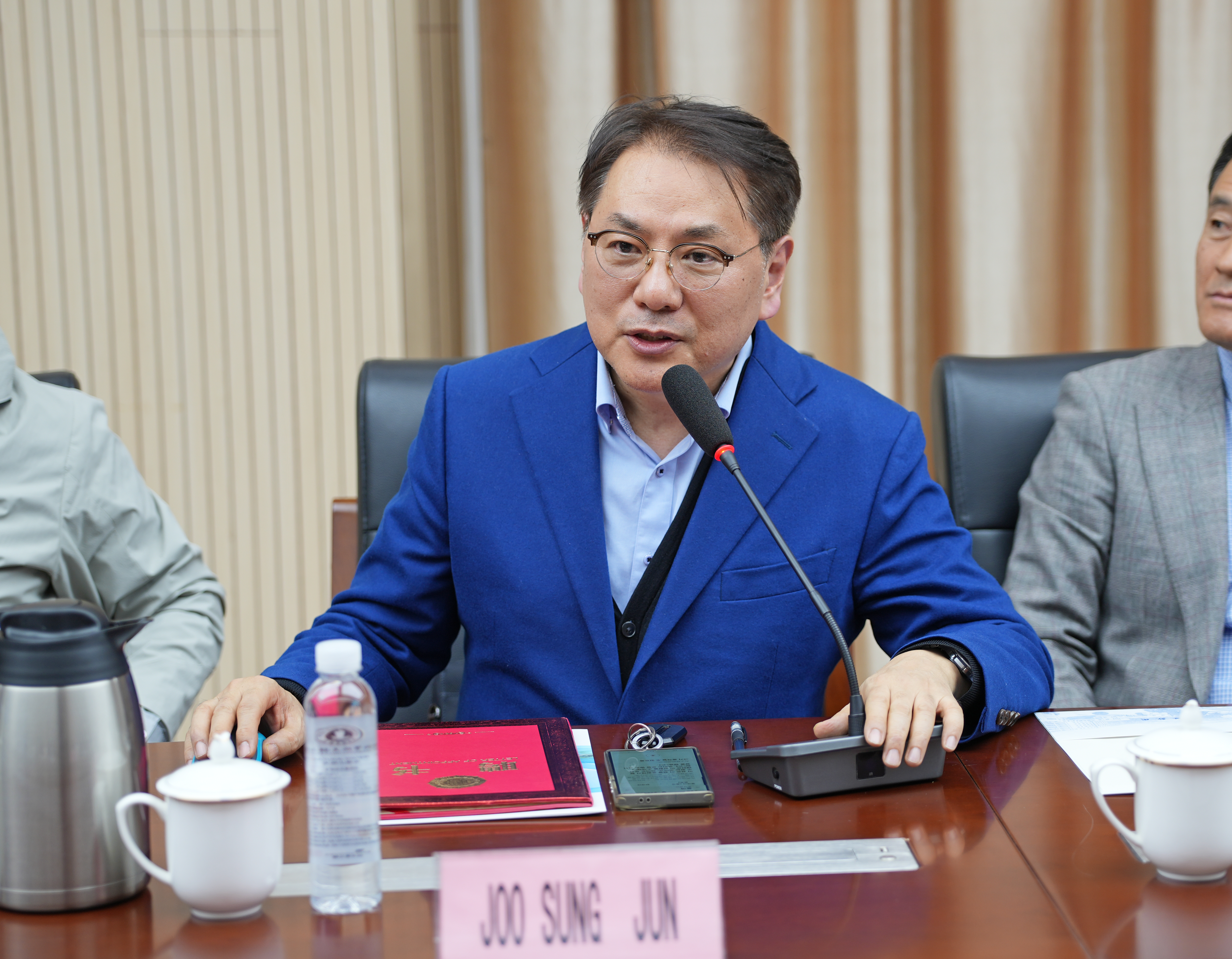 会上,陈鹏飞为特聘专家朱成俊教授颁发了聘书,并介绍了无锡集成电路产业发展情况和学校相关工作情况。他指出,无锡作为我国微电子产业的发源地之一,近年来着力发挥先发优势、配套优势、市场优势、环境优势,正在打造集成电路产业“新地标”,在此背景下,校企深度合作尤为关键。他强调,近年来,学校响应无锡“465”现代产业体系建设号召,深化校企合作、推动产教融合,取得了卓有成效的进展,为主动赋能地方集成电路产业发展提供了“太湖方案”。他表示,朱成俊教授的加入必将能为中韩合作集成电路关键技术研究院进一步加快技术转化、助力强链补链提供更大支持。