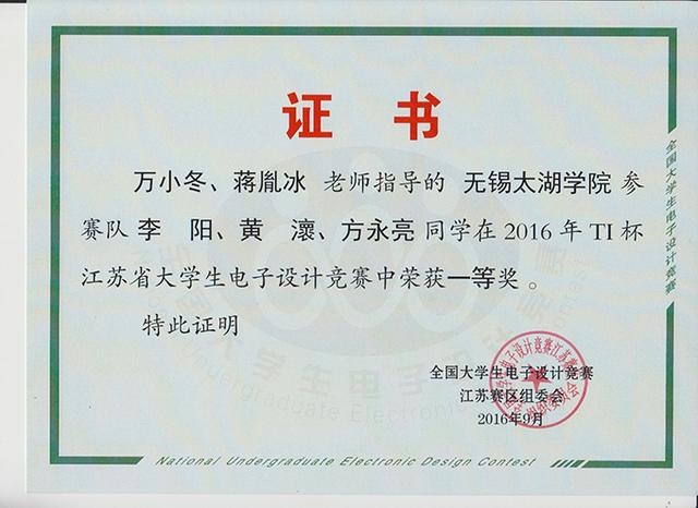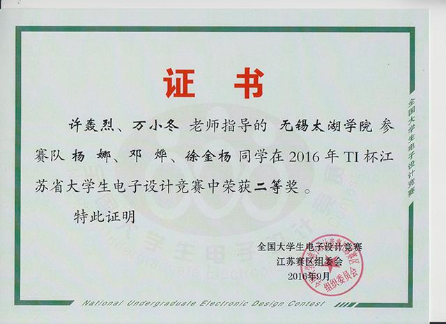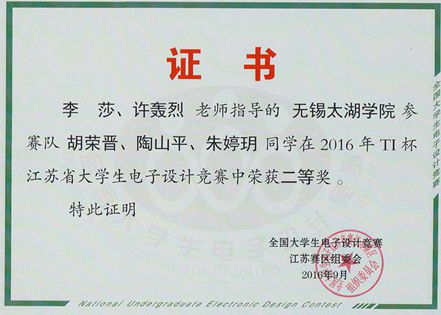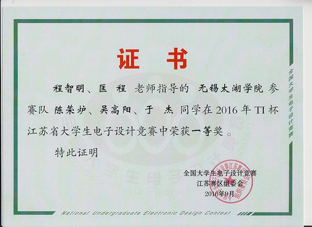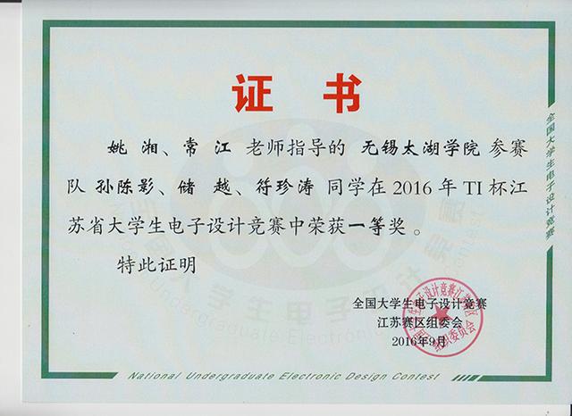 在7月下旬举行的2016年江苏省大学生电子设计竞赛中,我校物联网学院选送的10支参赛队伍,共荣获了7项大奖。省大学生电子设计竞赛题目,包括“理论设计”和“实际制作”,以电子电路设计应用为基础,涉及信号采集与处理、信号发生与信息传输、测量与控制、电源及变流技术等方面知识技术方法。面对如林强手,我校物联网学院同学勇于竞争,频频折桂。在“降压型直流开关稳压电源”参赛试题中,我校的陈荣炉、吴高阳、于杰,孙陈影、储越、符珍涛,李阳、黄瀤、方永亮,李凤麟、刘彤、石雨城4支战队,齐齐刷刷夺得一等奖;同时,胡荣晋、陶山平、朱婷玥战队,获“降压型直流开关稳压电源”参赛项目二等奖;陈颢彦、范炜、唐婧琪和杨娜、邓烨、徐金杨战队分别获得“简易电子秤”参赛项目二等奖。