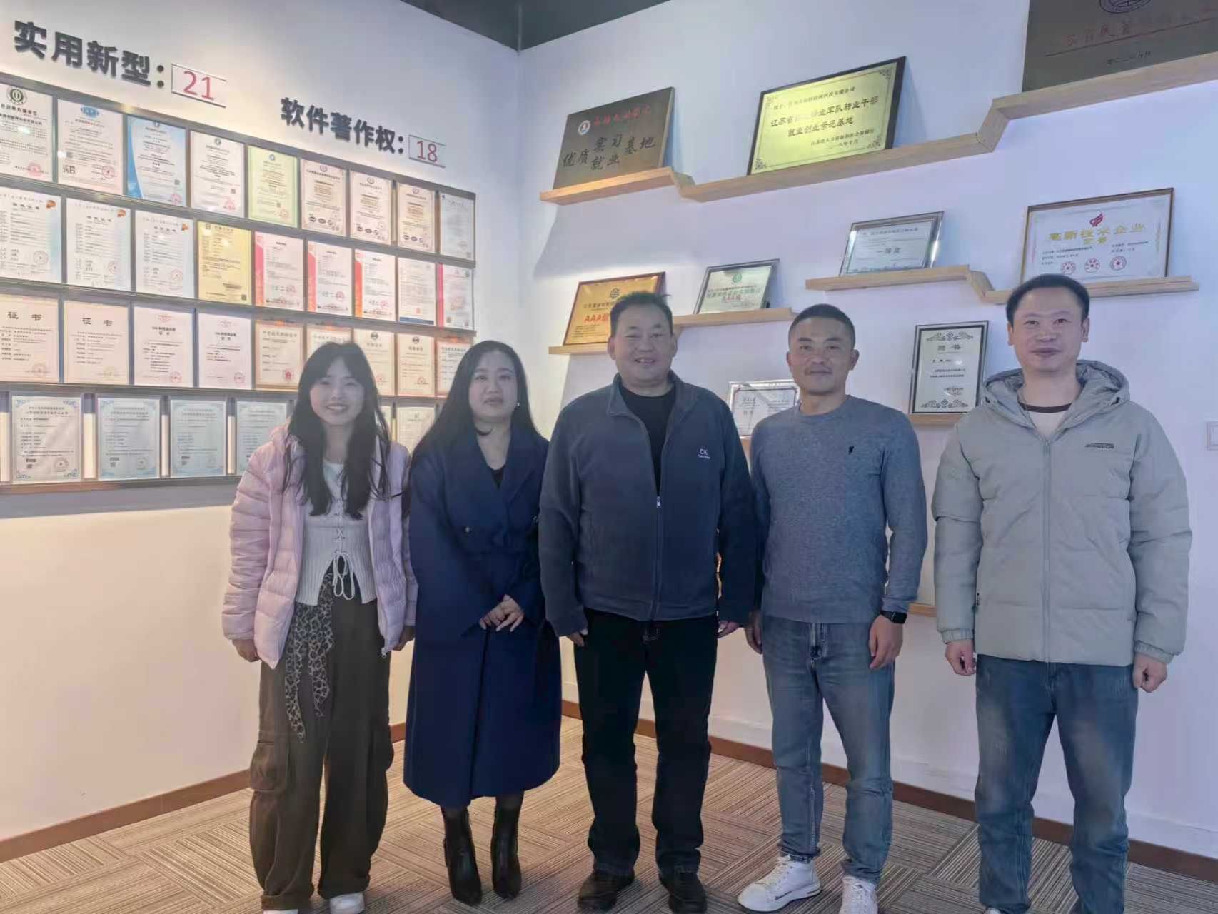 为持续深化校企合作内涵,探索知识产权共享与科研协同新机制,推动学院应用型科研与教学成果有效转化,2025年12月23日,无锡太湖学院物联网工程学院党总支副书记沈峰、物联网工程专业主任姚湘,以及孙钰、王慧老师等一行,赴江苏麦赫进行专项工作调研与洽谈。