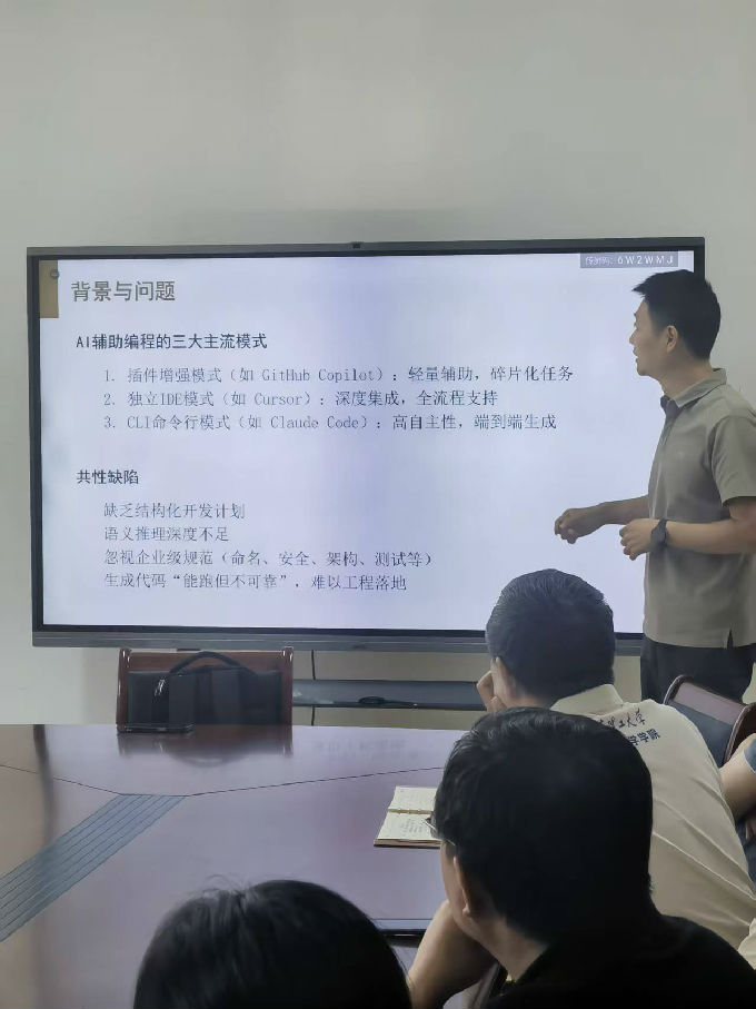 在随后的交流环节,与会教师围绕代码生成模型的可控性、训练数据偏差、与现有IDE的集成方式等议题展开了热烈讨论。大家就如何将此类前沿技术融入软件工程教学、提升学生编程能力培养效率等问题交换了意见,现场思维碰撞不断,产生了诸多具有实践价值的建议。