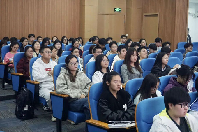 仪式结束后,马克思主义学院潘杰老师主讲的以“中国共产党的性质、最高理想和根本宗旨”为专题的第一节党课顺利举行。